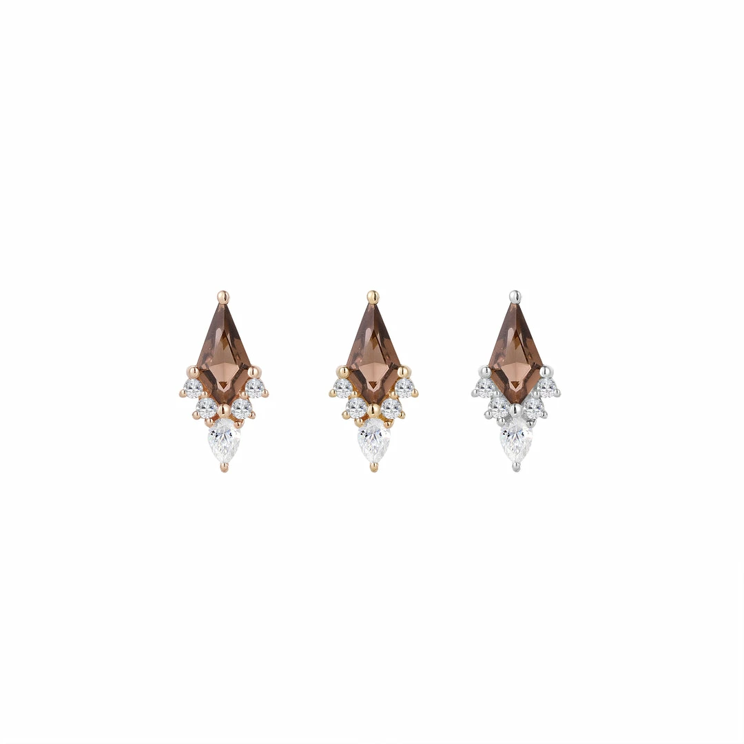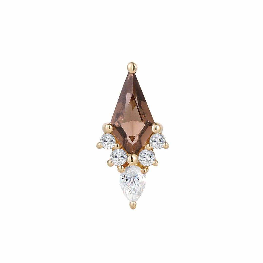 Classic beauty meets warm tones in a genuine Smokey Quartz kite cut stone lined withย Swarovskiย CZ’s. Afterglow styles beautifully in the earlobe, lip, and nose piercings.