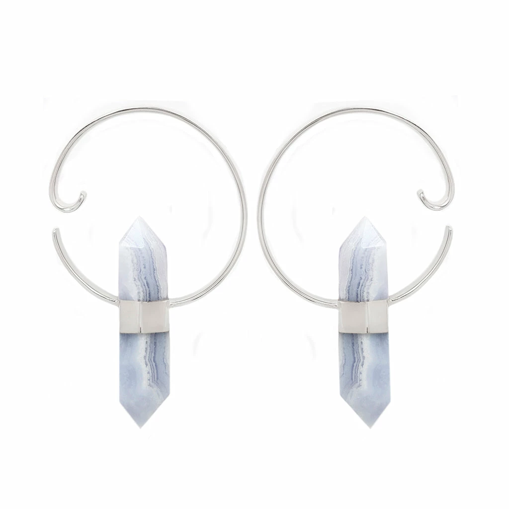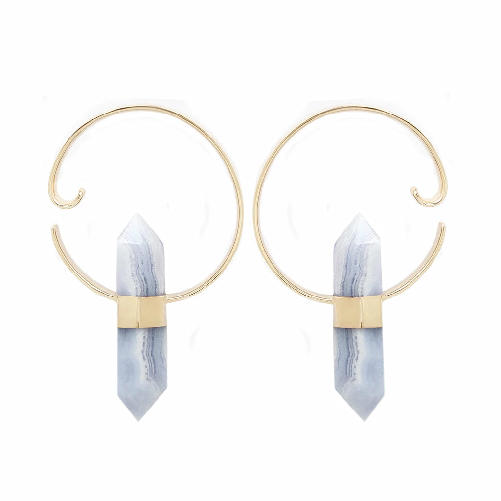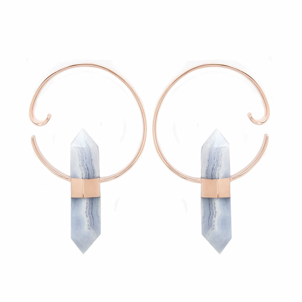 A new take on a classic hoop. These rose gold plated weights feature a stunning range of limited edition blue lace agate double-sided points.ย