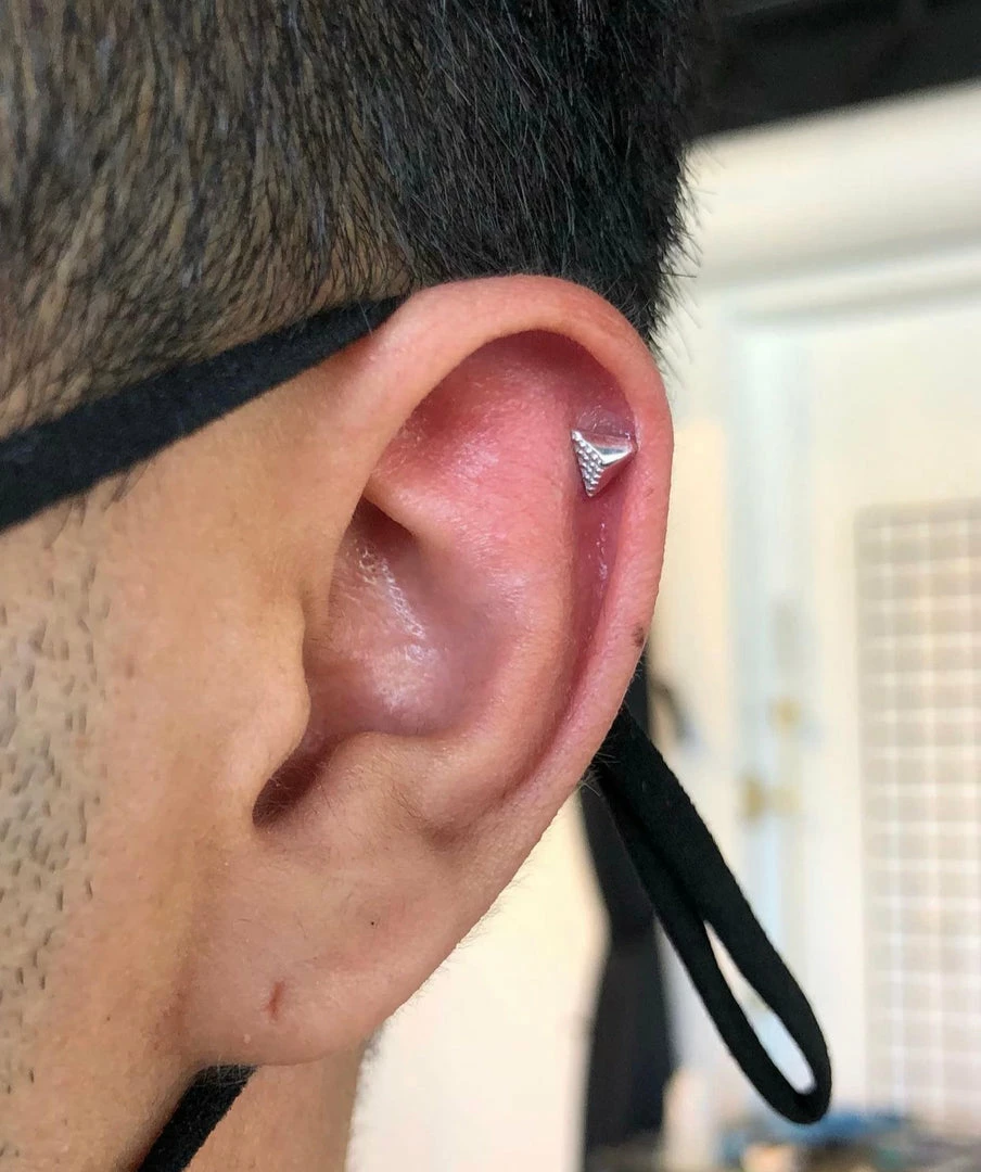 Our solid gold single side beaded triangles are a must-have!ย Designed to satisfyย your minimalist punk needs,ย thisย design will bring your classic ’77 punk style up to date in a flash!