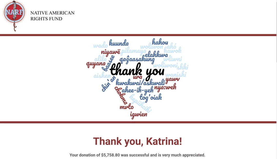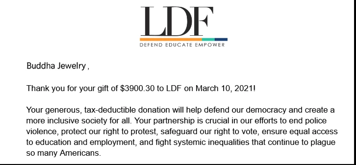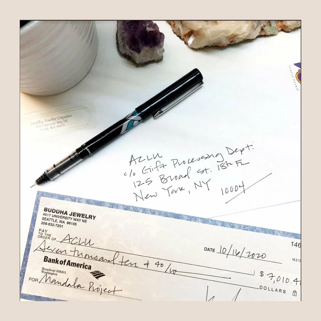 - Charities we have donated to with the help of our customers: ACLU, NAACP LDF, and the Native American Rights Fund (see donation photo!)