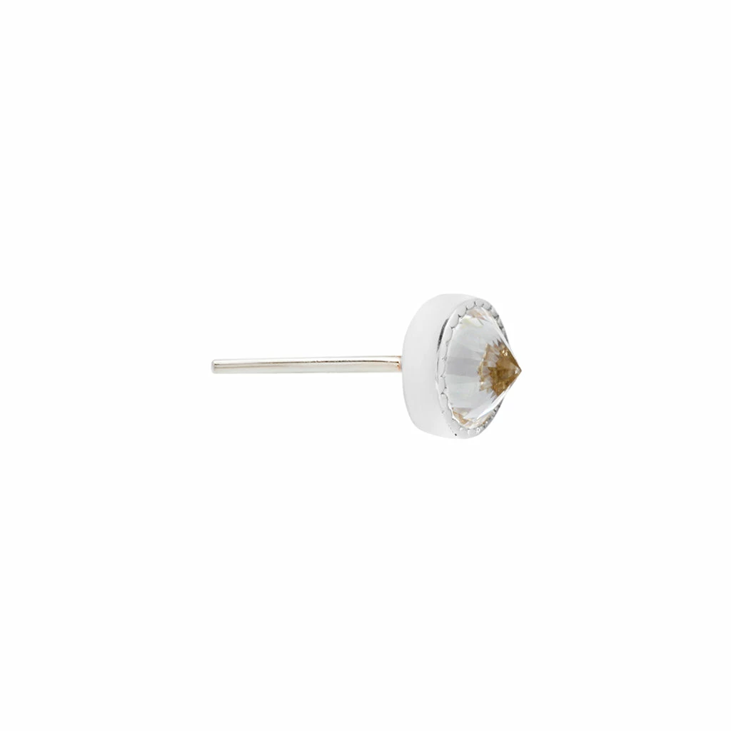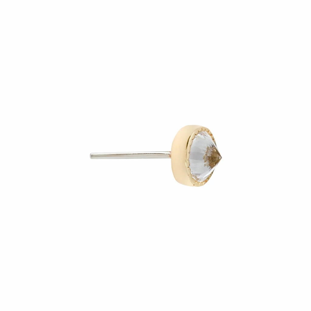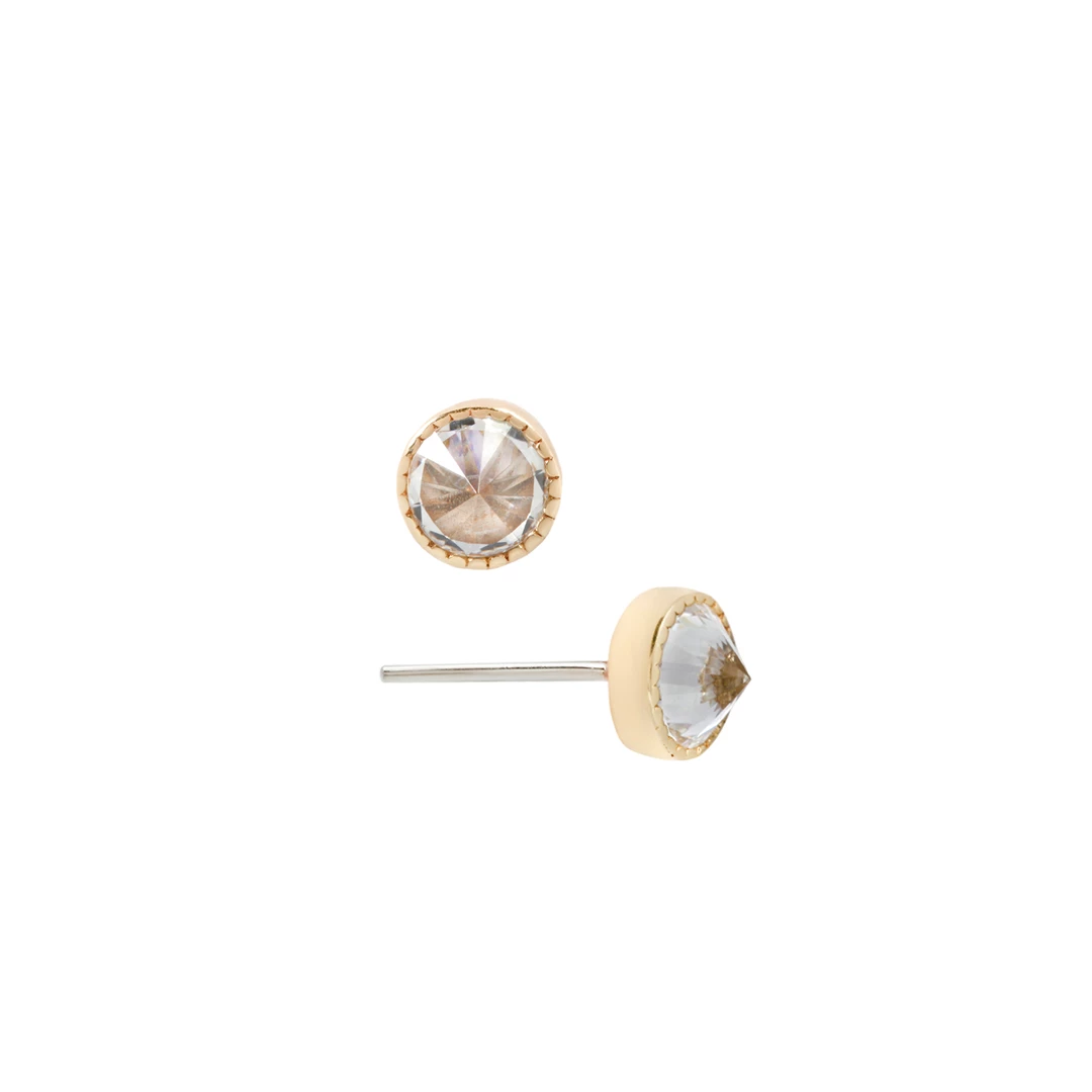 ย A unique take on a staple design, our reverse setย Swarovskiย CZ is wrapped in solid gold with fine milgrain detailing. We are excited to now offer this gem-setting technique that is turning heads, and stones, upside down to give you another perspective on fine jewelry