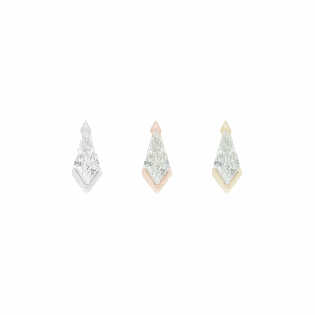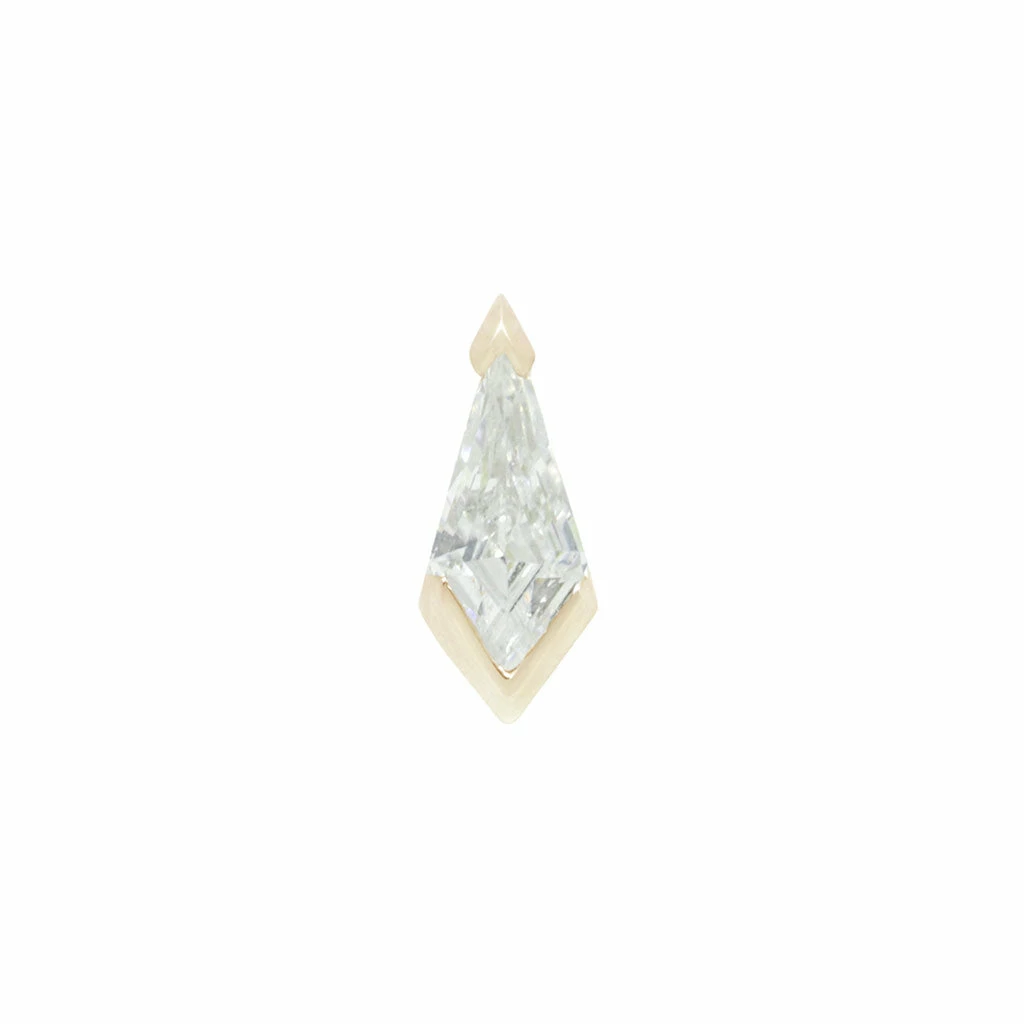 Meet the newest addition to our kite cut family of designs! We wanted to encapsulate this design with gold, while still allowing the CZ to shine. Pair with one of our Celestial ends for the perfect duo!Â