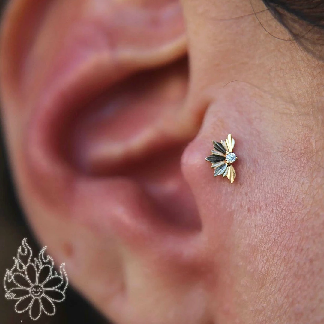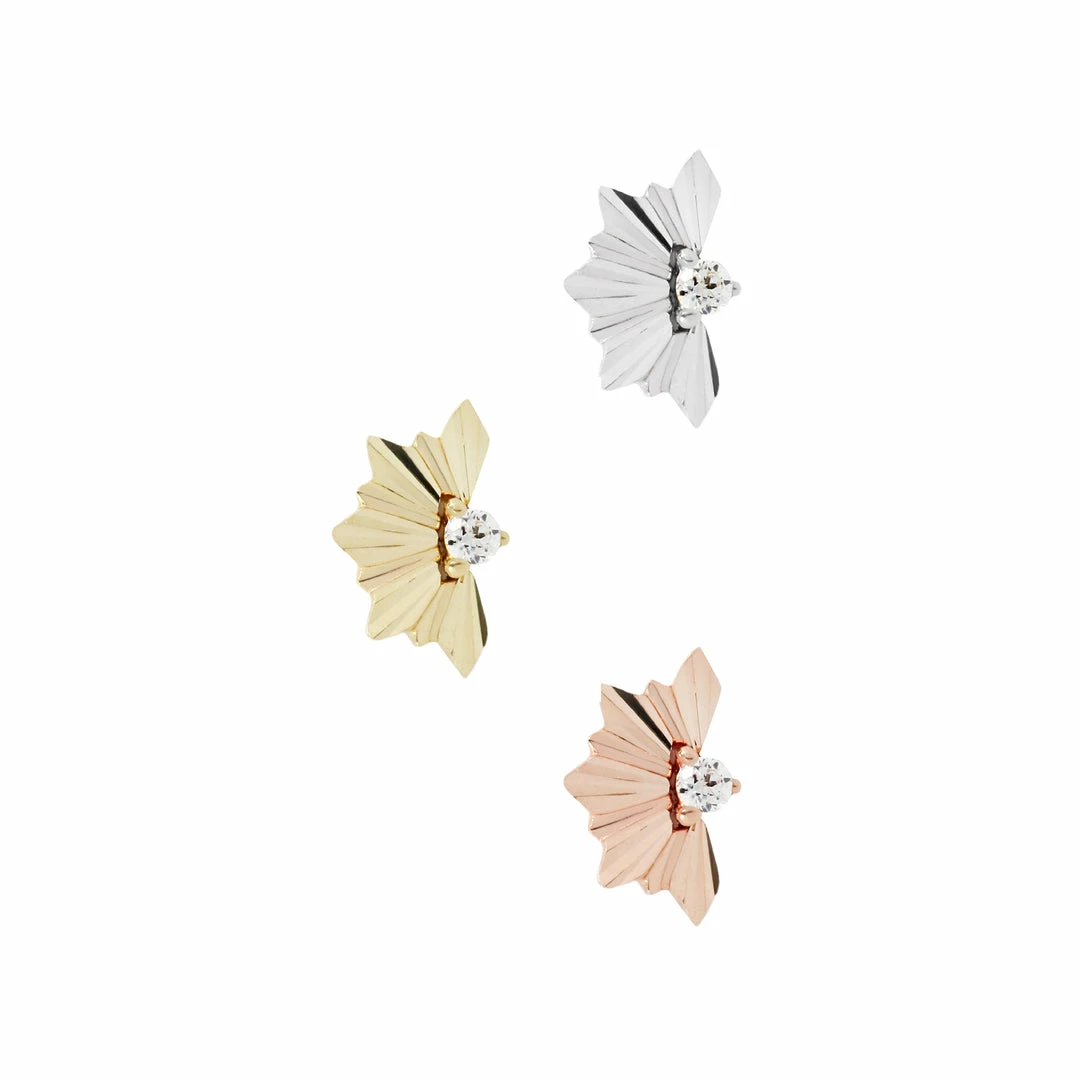 Surrender your heart to a gorgeous pairing of Solid 14kt Gold + a one-of-a-kind CZ. This threadless end is the perfect match for luxury jewelry lovers everywhere. Surrender is so versatile, you’ll be able to wear them in just about any piercing! We especially love them in the Tragus though.