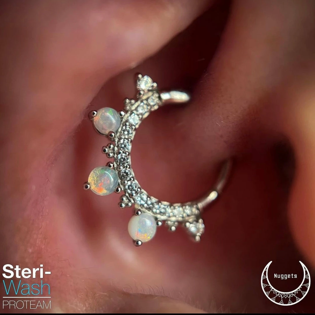- (3) 2mm genuine Opals + a row of 1mmย Swarovski CZ’s