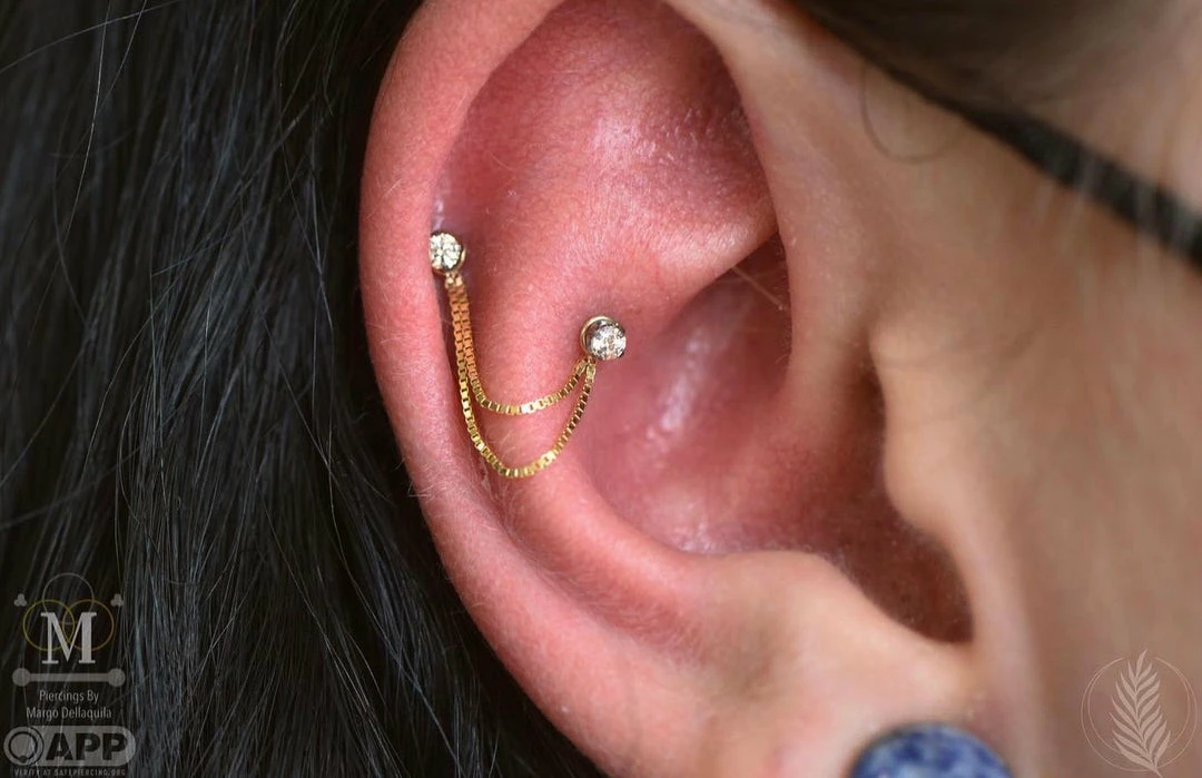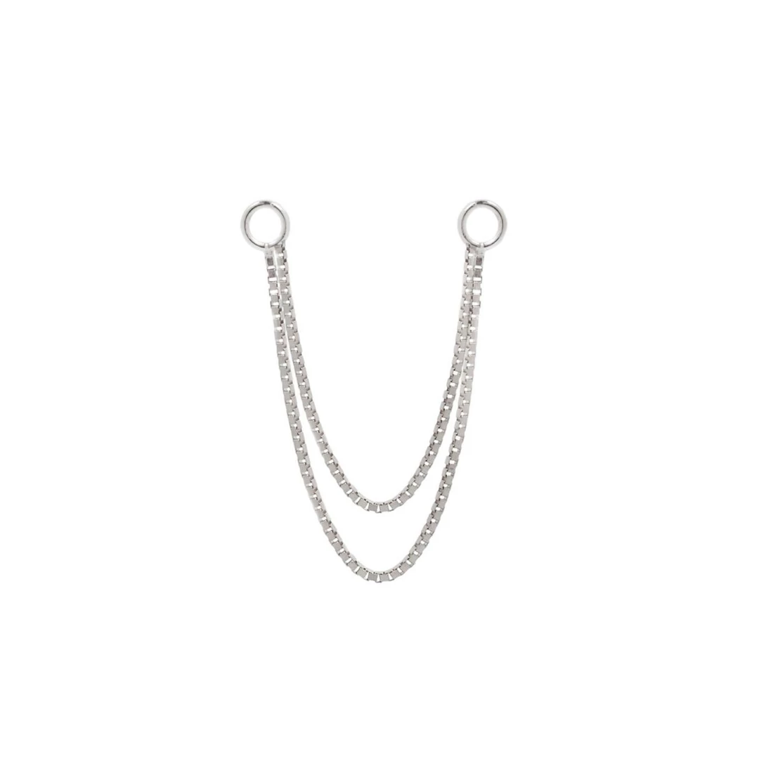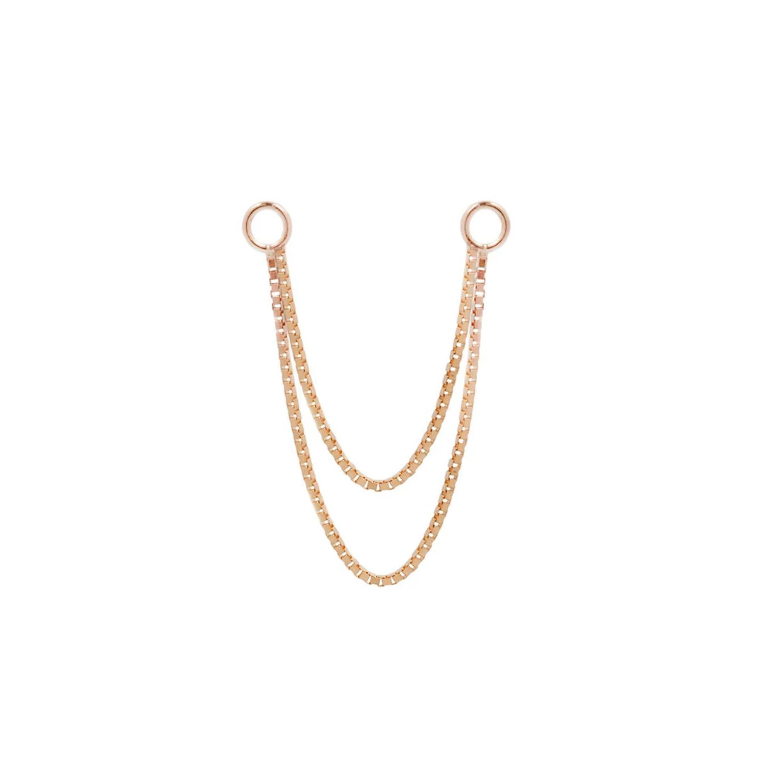 Upgrade your existing look with our double box chain! By placing the jump rings on the front and back of the piercing post this chain brings elegance to any one of our gold ends!