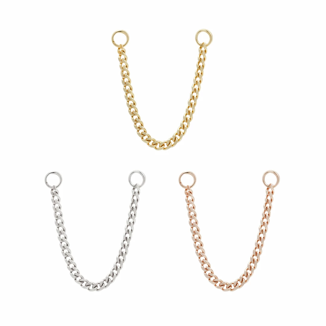 Our 14kt faceted chain will enhance any look with more shine and sparkle. Use the jump rings to link two piercings to create new styles.