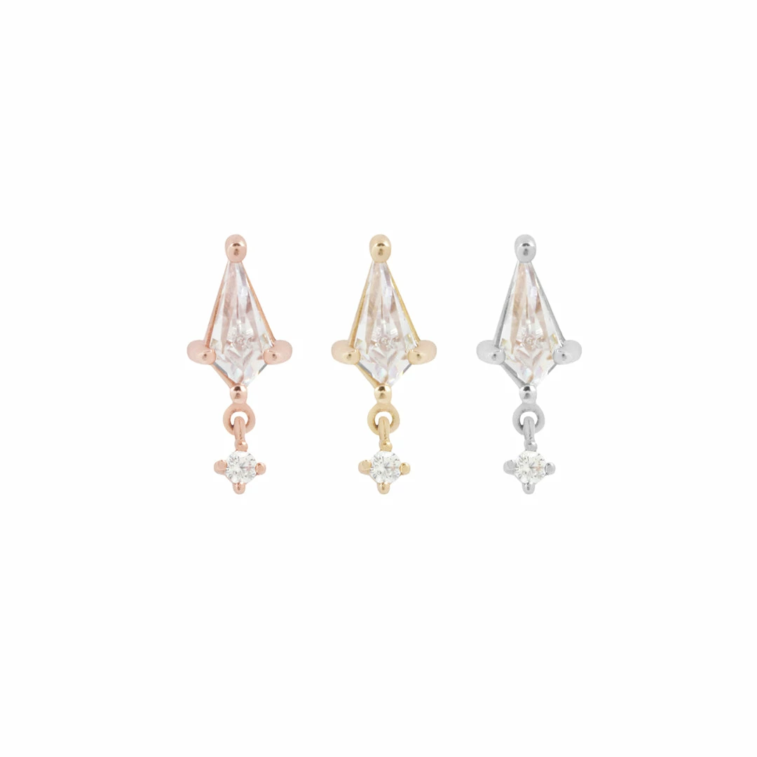 A beautifully crafted design featuring Swarovski kite-cut CZ’s adorned with an adorable round CZ dangle that will take your breath away!Â