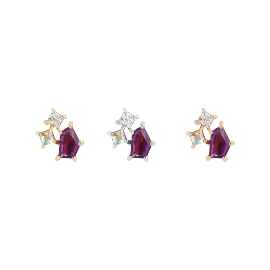 Glamorous meets whimsical in this unique design of Amethyst, Mercury Mist Topaz + CZ.