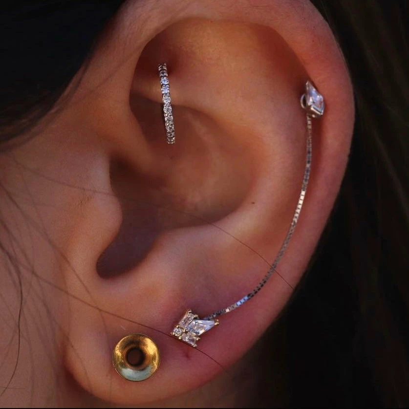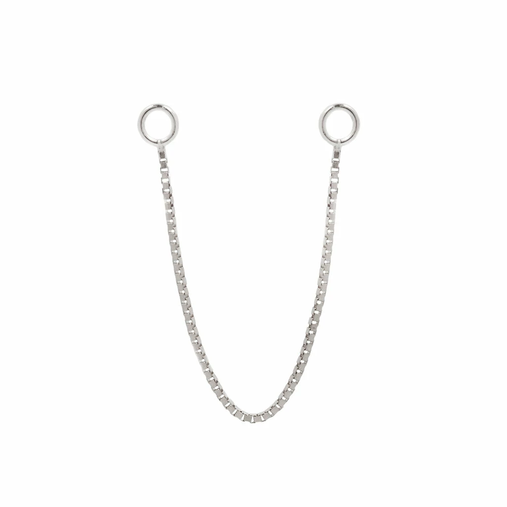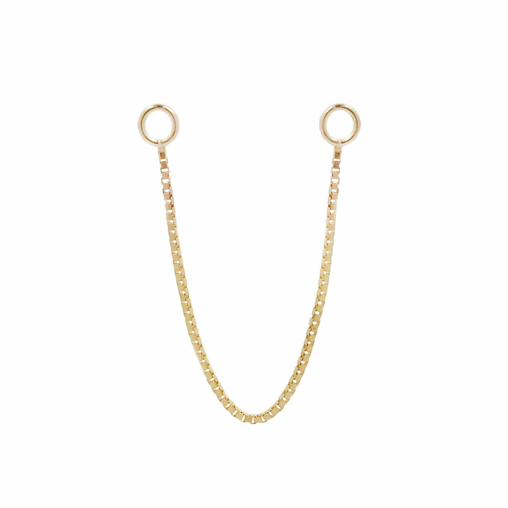 Our solid gold box chain is a must have! Use this stunning chain as a way to link two piercings together or use it on the front and back of a single piercing for a dramatic look. A fun alternative to a hoop!