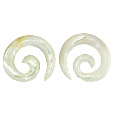 Hand-carved mother of pearl spiral design. Limited stock! Once they’re gone, they’re gone!