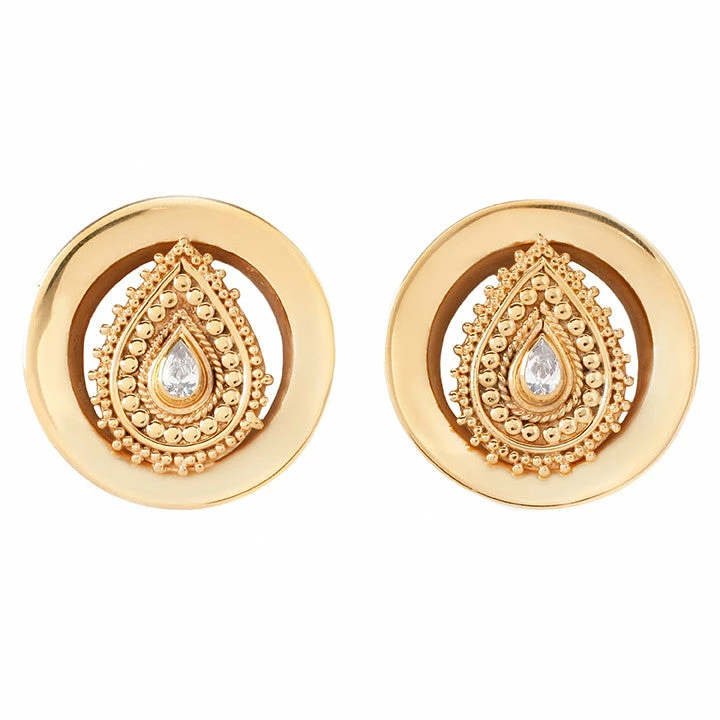 Mayan flared fronts feature handmade detail, adorned with a pear-shaped CZ.Â