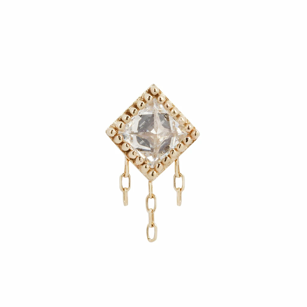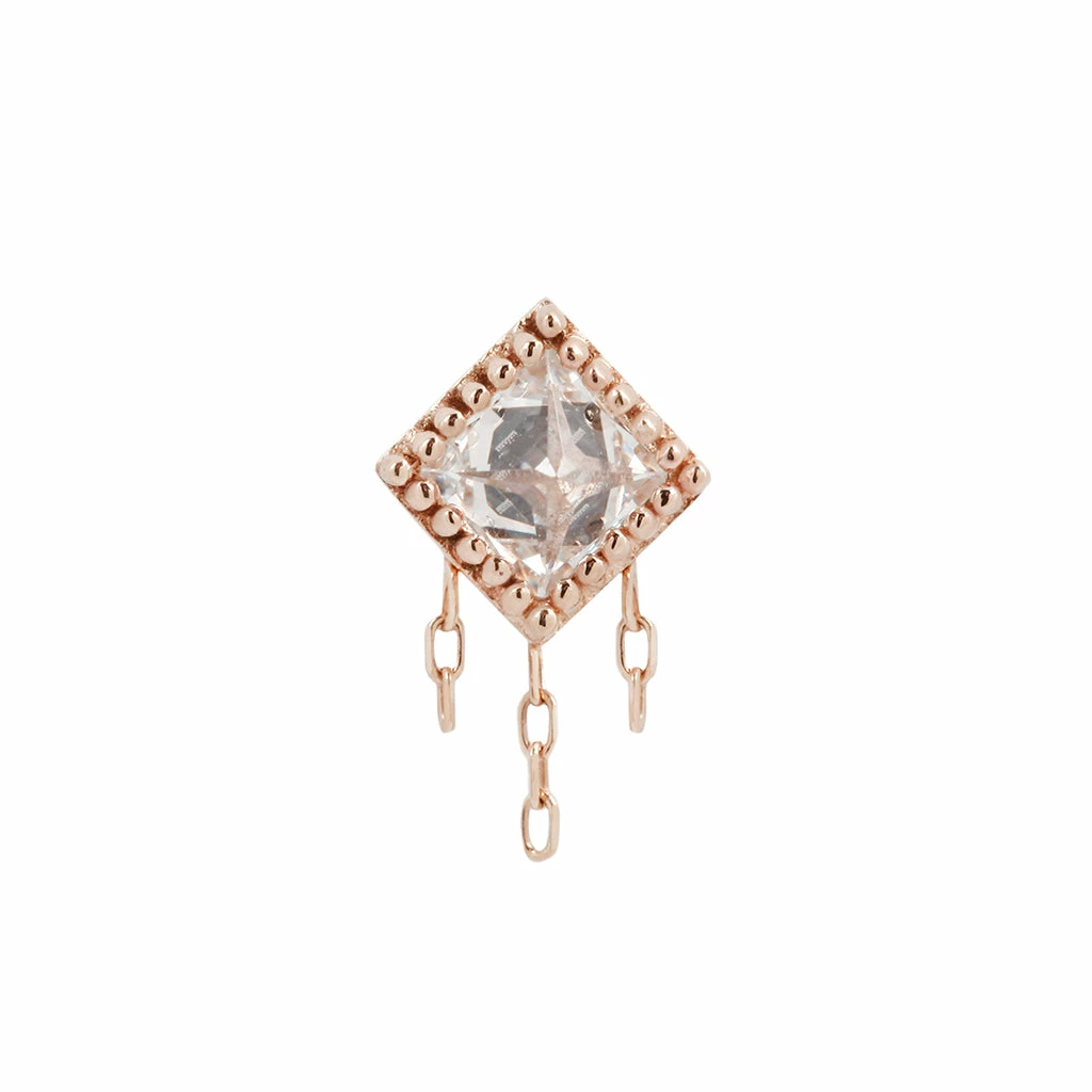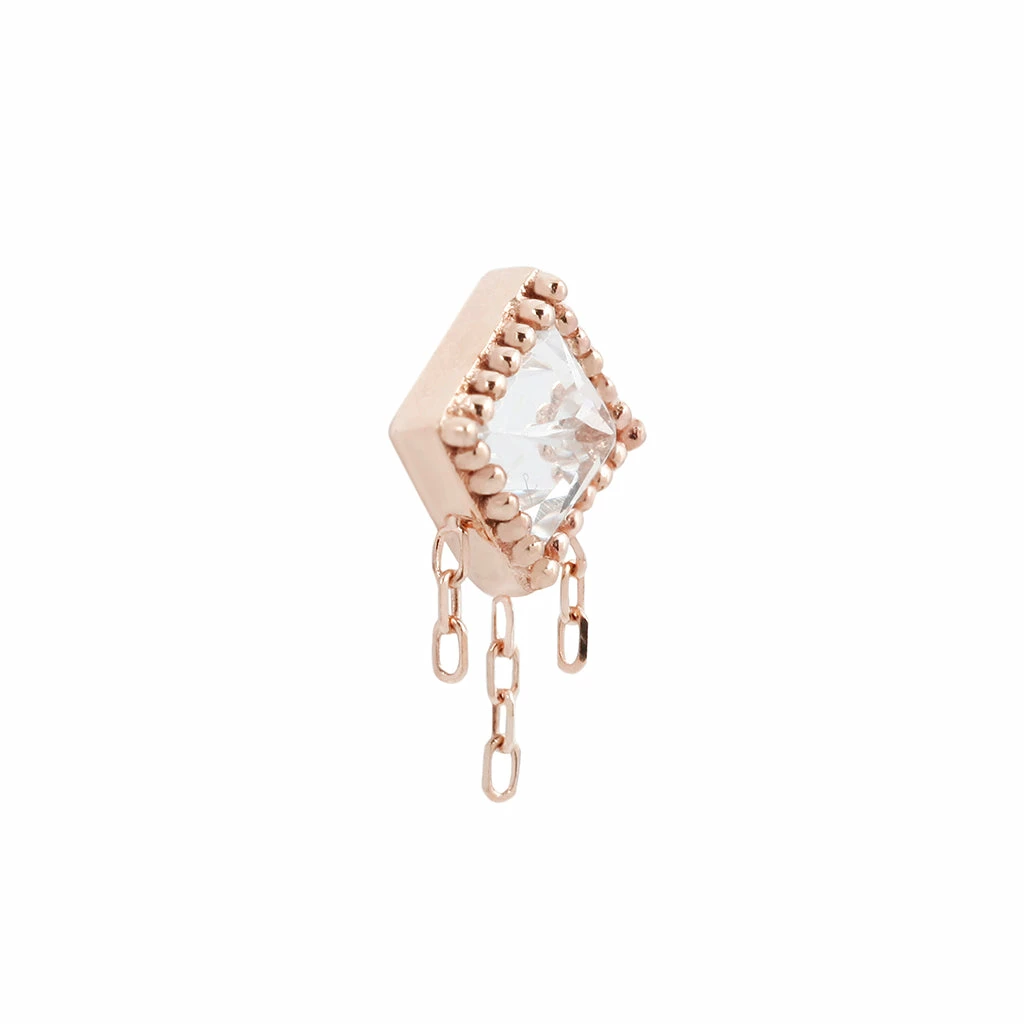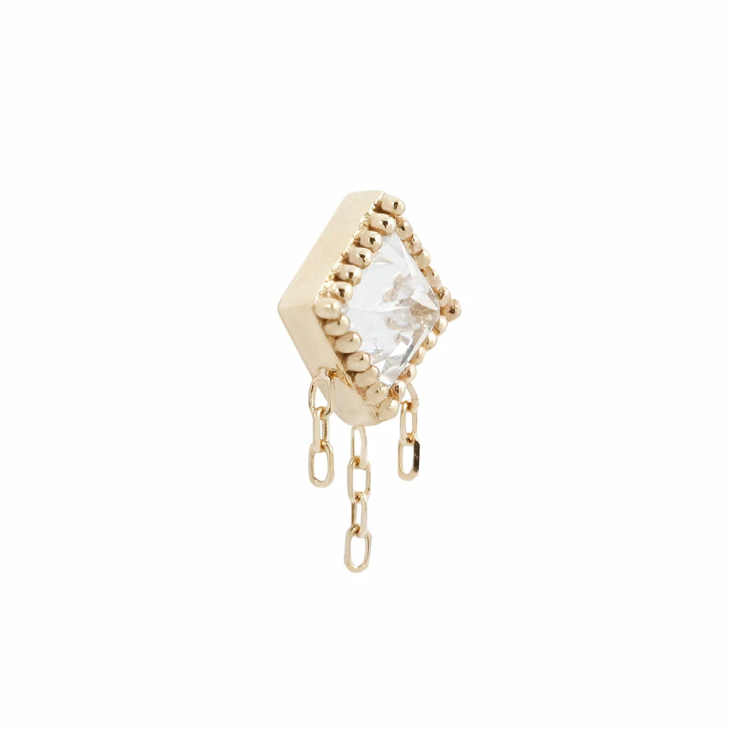 A glamorous new addition to our Movement collection. This reverse set Swarovski CZ is adorned with 3 chains at the bottom making it a great option to help finishย anyย curated ear!