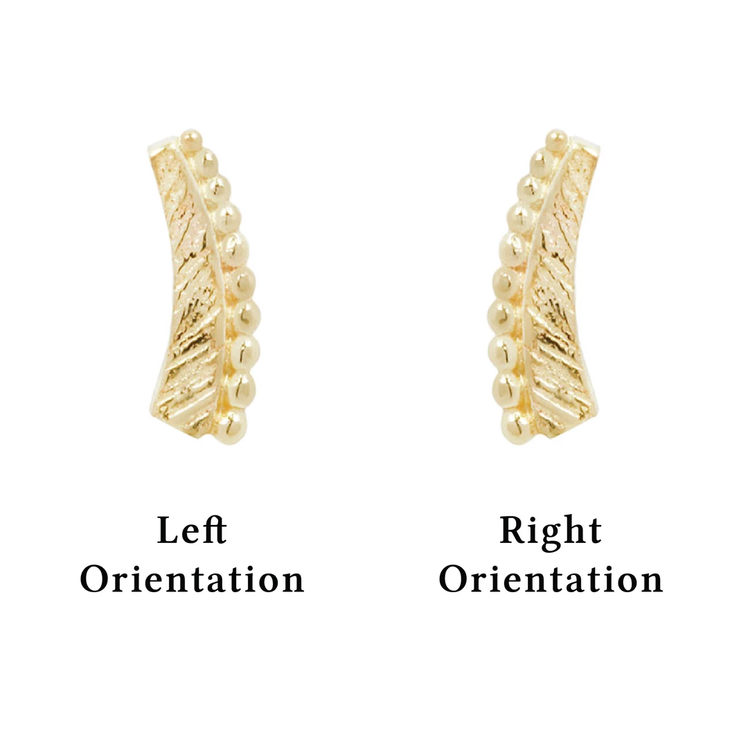 Textured 14kt gold with a beaded edge. Soar encompasses simplicity and individuality into a stunning everyday piece.