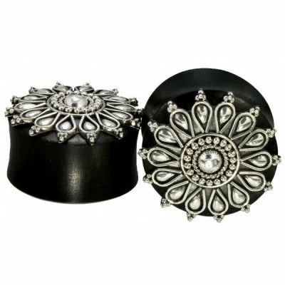Double flared plug with an arang wood base, featuring beautiful solid silver details