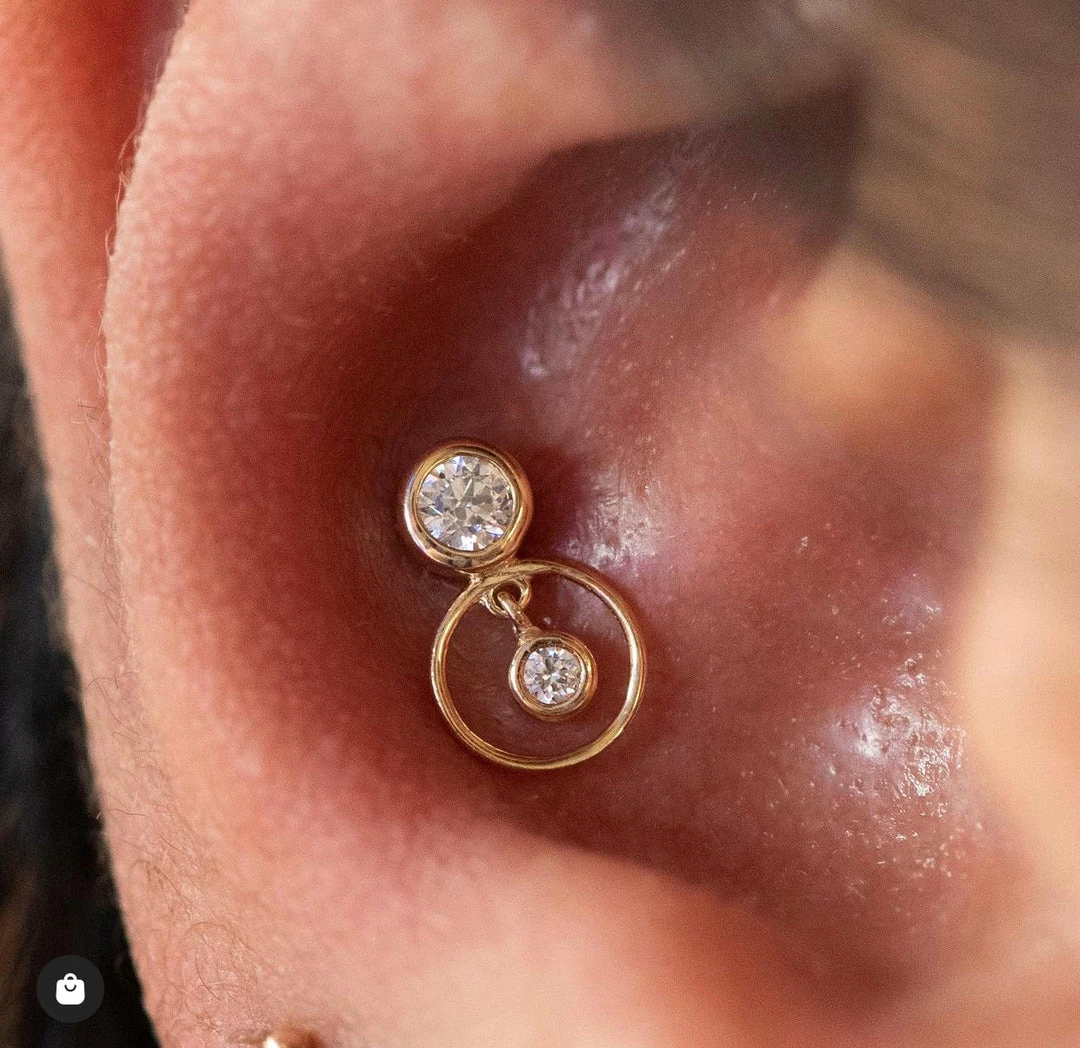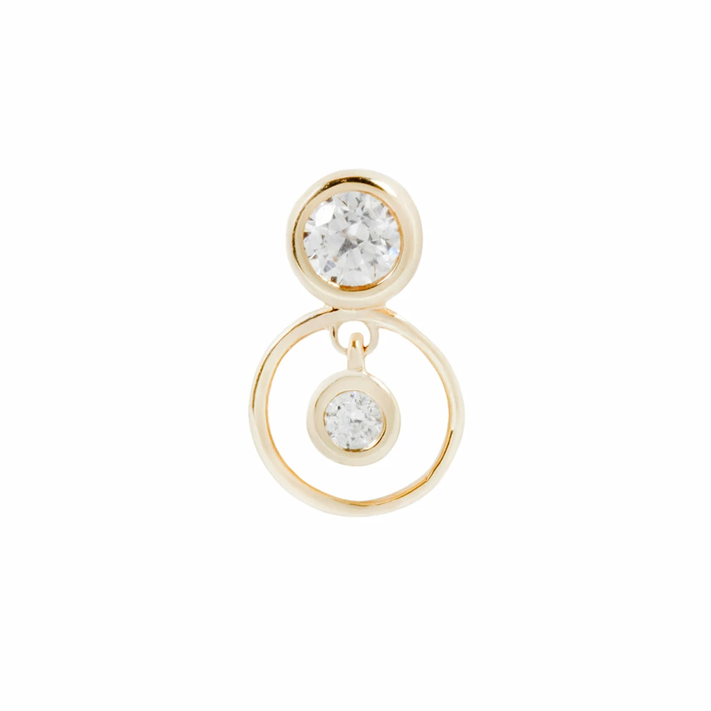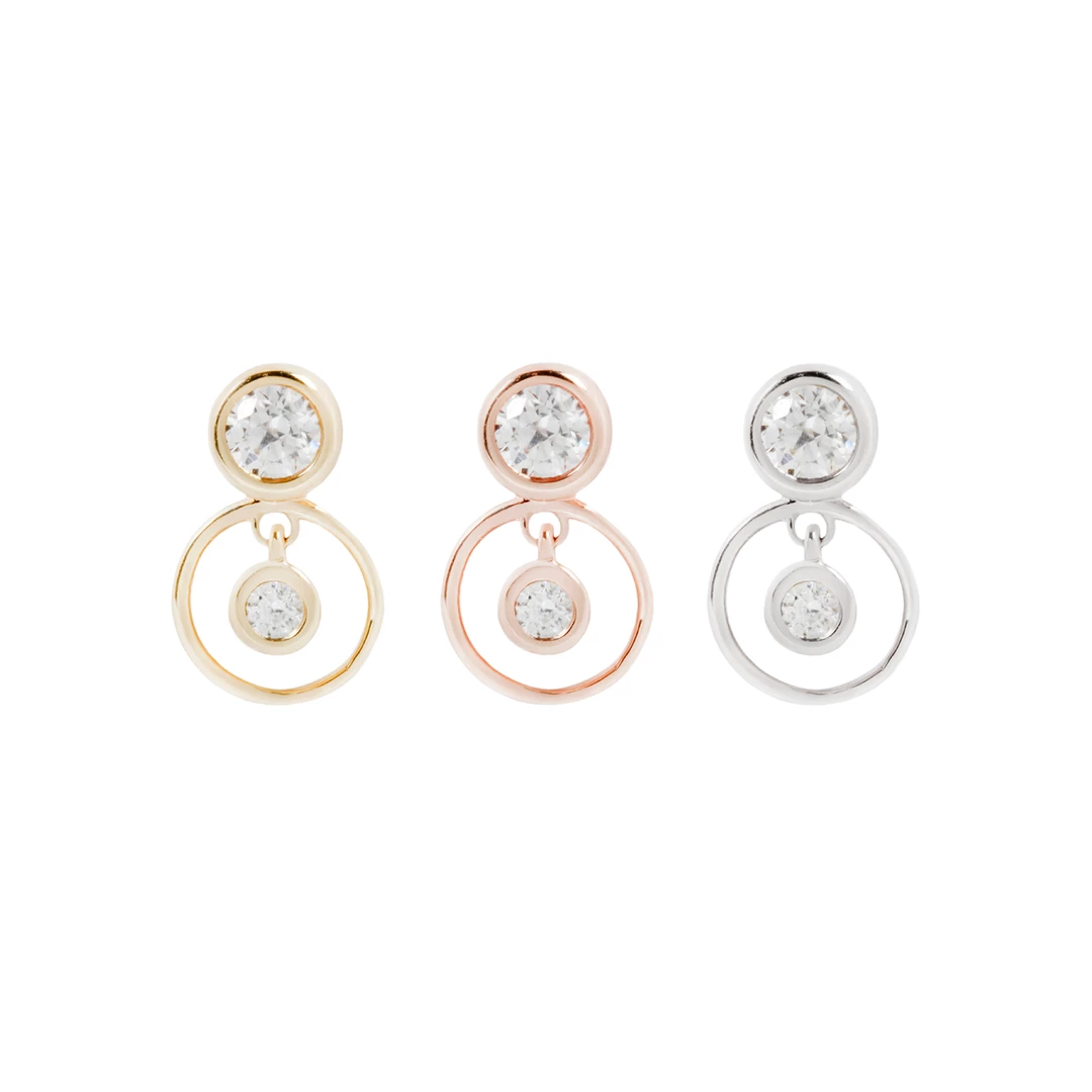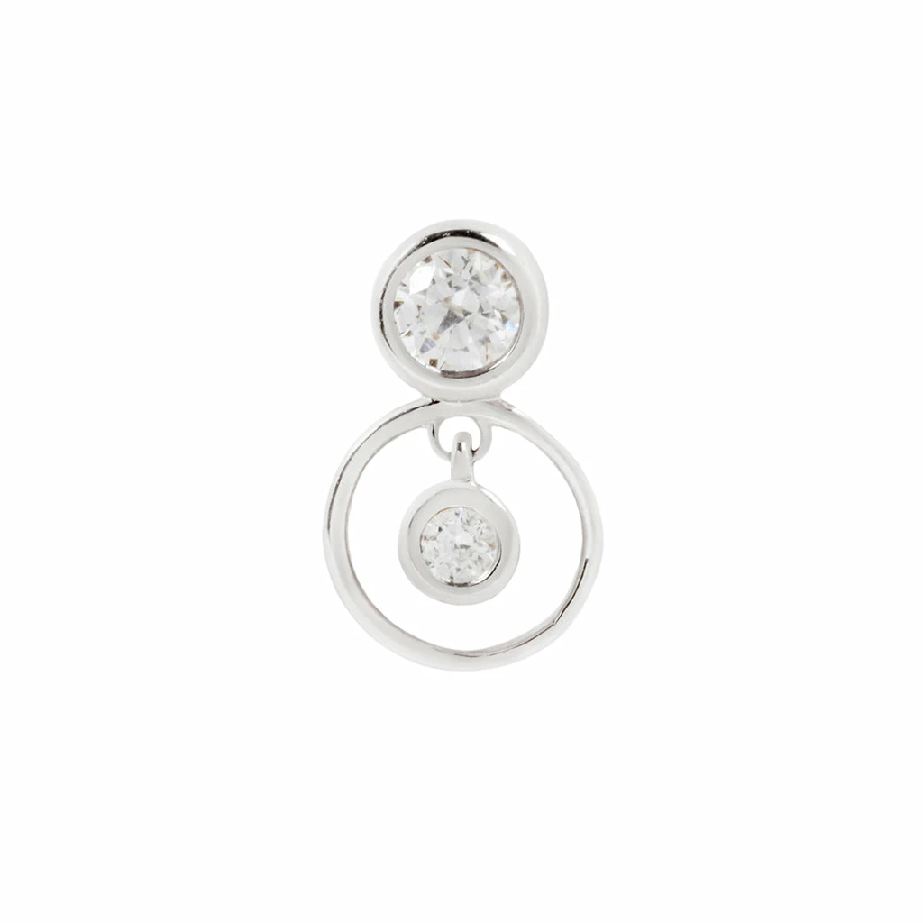 - (1) Top stone 3mm bezel set Swarovski CZ / (1) Bottom dangle 1.5mm bezel set Swarovski CZ