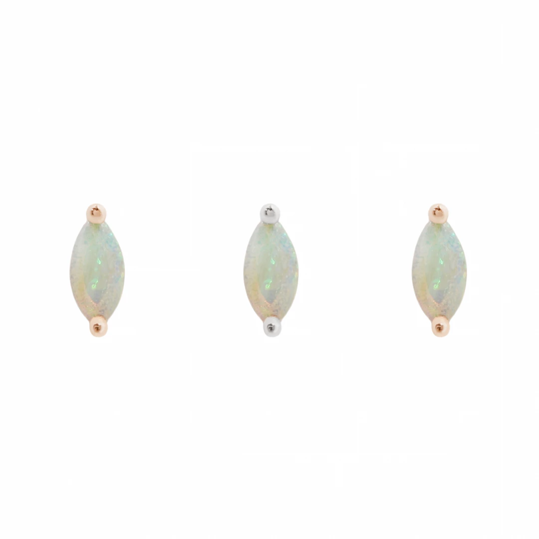 Designed to satisfy your minimalist needs, thisย design willย enhance your lookย in a flash. Featuring genuine Australian opals, the Zuri is a must-have for any piercing project!ย